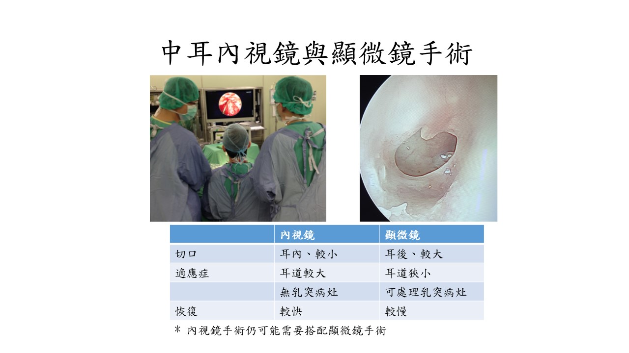 耳內視鏡手術傷口小而疼痛輕微。手術的成功率並不亞於傳統顯微手術。目前此手術於本院屬健保給付,無須自費。