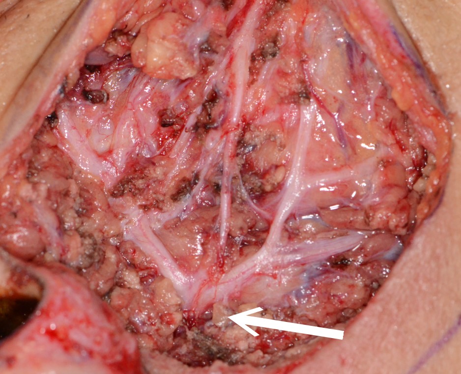 右圖白色箭頭為顏面神經