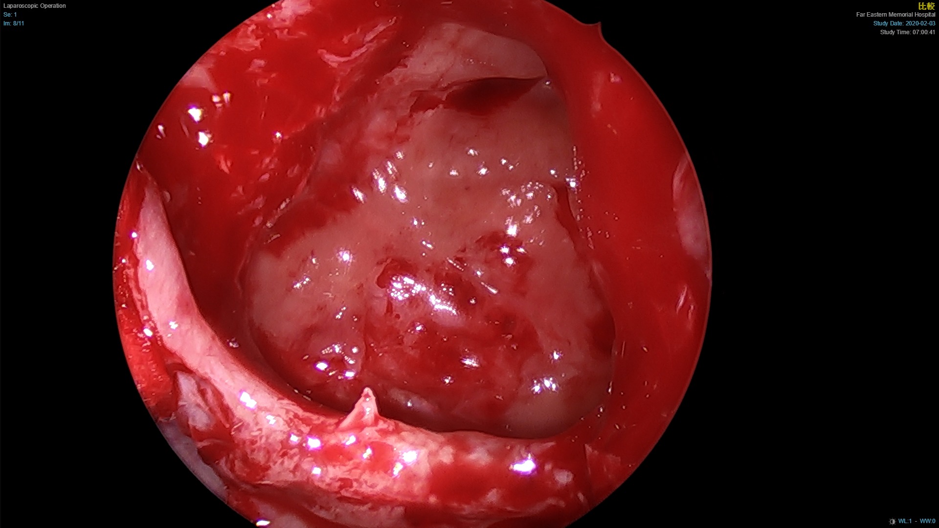 左側鼻竇炎之內視鏡手術,將鼻竇開口擴張,清除鼻竇內膿液