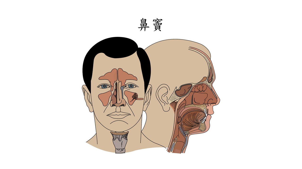鼻竇:在鼻腔附近,位於人的頭顱,在頭骨之間、鼻腔周圍的顱骨與臉骨之內。鼻竇共有四對, 平時充滿了空氣。發炎時可能會黃鼻涕、聞到臭味及頭痛。如果超過3個月就定義為慢性鼻竇炎, 可能需要進行鼻竇內視鏡手術